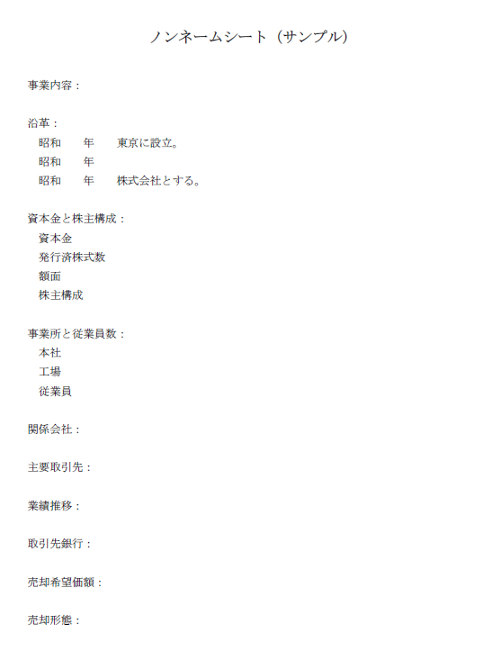 ノンネーム(売り手候補様が特定できない内容)にて概要を作成し、買い手候補様に打診いたします。
