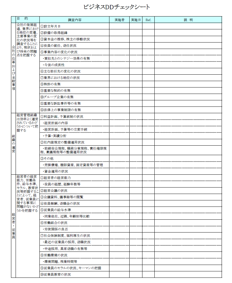 デューデリジェンスの実務において、一般的に必要となるチェック事項をあげております。