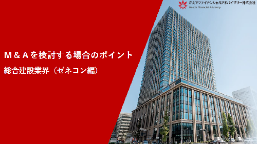 総合建設業(ゼネコン)は、今、M&Aの加速している業種の1つです。当社が過去にご支援させていただいた経験に基づき、これから検討に入る方だけでなく、将来的な選択肢の1つとして情報収集される方にも、ゼネコンM&Aのポイントをお伝えいたします。