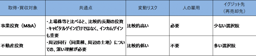 【表】事業投資と不動産投資