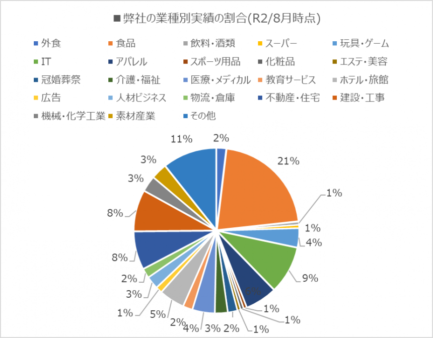 また、当社は完全成功報酬制の先駆けであるという点についても、お調べになったうえで問合せいただくことが多いようですので、事業承継(M&A)の案件として受託する確率も同業他社様と比較しましても高いと思います。