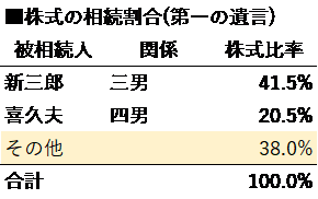 第2の遺言の内容は、信夫氏保有の株式80%を長男である信太郎氏、20%を四男である喜久夫氏に譲るよう書かれていたのです。