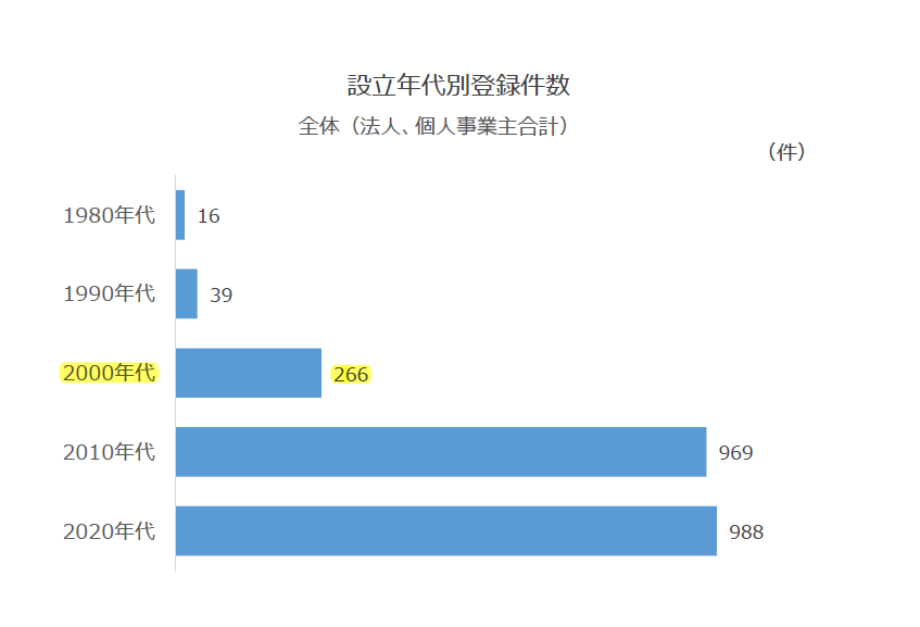 中小企業庁の公表資料から注目したいのは、2,278件の最終登録支援機関のうち、創業2年以内の機関が全体の約43%である988件、2010年以降に創業した機関を合わせると1,957件と実に全体の86%になるとのことです。、設立後年数だけで実力を推し量ることはできませんが、1つのM&Aを成功させるのに半年程度の期間を要しますので、歴史の浅い会社は、実績不足、ノウハウ不足と言われても否めません。