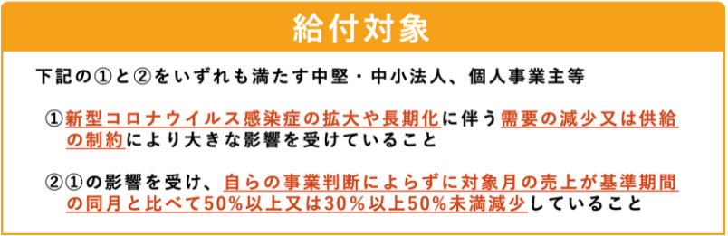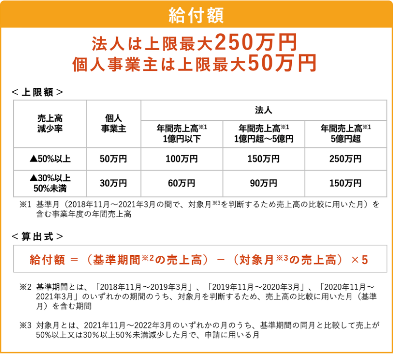 法人の上限は250万円、個人でも最大50万円の「給付」が受けられます。