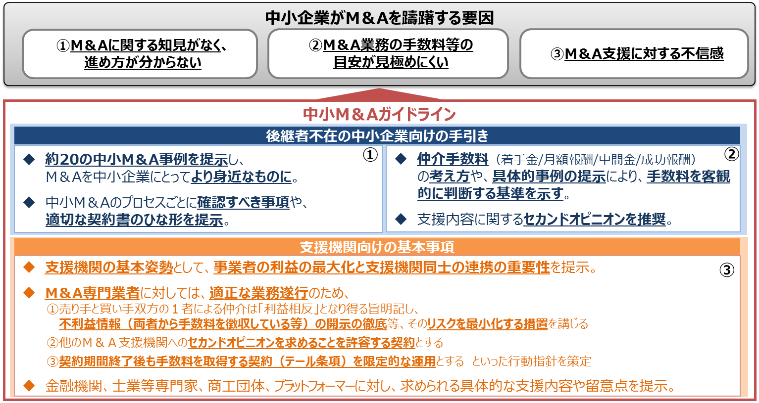 本制度は、2020年3月に中小企業庁より公表された、中小M&A支援機関の行動指針が示されている「中小M&Aガイドライン」を遵守した支援機関(ファイナンシャルアドバイザーおよび仲介業者)のみが登録可能となる制度です。